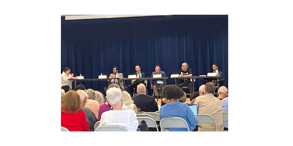 Deborah Belsky attends the Greater Silver Spring Democratic Club, the District 20 Democratic Caucus and the Montgomery County Young Democrats Montgomery County Executive Candidates Forum moderated by Ginny Bixby, Local Government & Politics Reporter, The Banner. All County Executive candidates Mithum Banergee, Andrew Friedson, Evan Glass, Peter James, and Will Jawando participated.